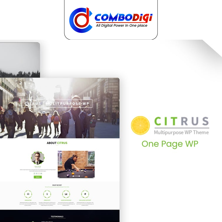Citrus is a sleek and visually appealing one-page WordPress theme perfect for presenting your business or portfolio in a clean, structured, and engaging way. Its modern layout highlights key information through beautifully arranged sections including About, Services, Team, Portfolio, and Testimonials. The theme offers a smooth scrolling experience that keeps visitors engaged while ensuring fast load times and full mobile responsiveness. With easy customization options and a well-organized design, Citrus makes it simple to build a professional online presence for agencies, freelancers, startups, and personal brands. Whether you’re showcasing work or promoting services, Citrus delivers a vibrant and polished website experience.